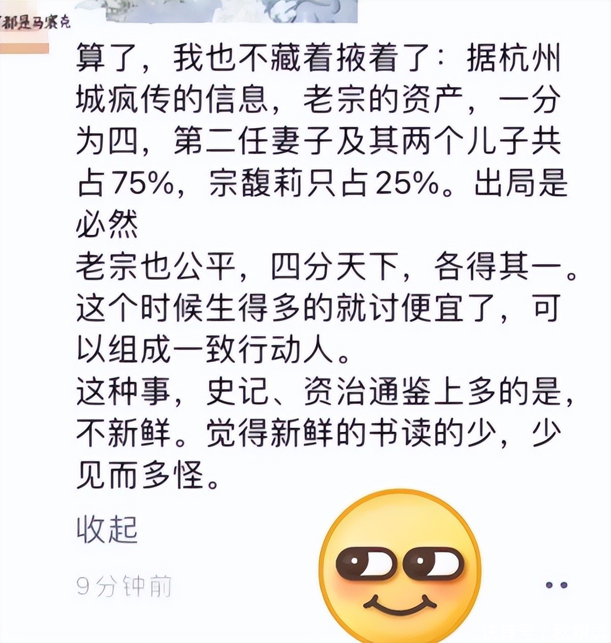 因此宗庆后与杜建英的关系,不仅是热诚问题,更触及要害利益。 宗泽后暗示,无论是原配如故杜建英,之是以能和平共处,王人因利益牵涉。