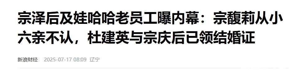 ·参考开端:新浪财经《宗泽后及娃哈哈老职工曝内幕:宗馥莉从小六亲不认,杜建英与宗庆后已领成婚证》