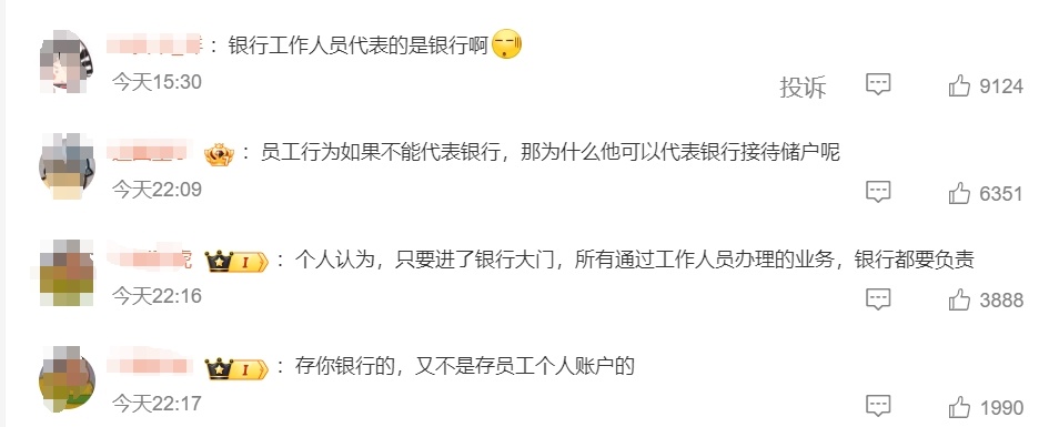 胡现红10万元进款被工行职工转成愉快 胡现红说,她一进银行商业大厅,就有一位银哄骗命主谈主员关注地迎了上来,主动究诘她办理什么业务。当得知胡现红要办理依期进款续存后,这位使命主谈主员向胡现红保举说,银行里面有一个利息高少量的储蓄,问她要不要办。胡现红默示,因为孩子上学要交膏火,需要花钱,只存一年的依期。这名使命主谈主员(过后得驰名叫黄超杰)说这个便是一年的依期。 胡现红唯有小学二年事的文化水平,自助柜员机也不太会使用。在这名“热心”使命主谈主员的匡助下,她输入密码,完成了一系列手续。 一年后,2023年5月25日,胡现红再次来到了工商银行项城市支行办理续存。但银哄骗命主谈主员查询后却示知胡现红,她的账户里面莫得钱。 胡现红到工商银行项城支行究诘时,大堂司理邝曼曼承认黄超杰是银行的职工,黄超杰的作念法属于个东谈主行径,不属于银行行径。 赌博平台排行2023年9月8日,她在河南省信访局进行登记。河南省信访局转交周口市信访局惩办,周口信访局转项城信访局惩办,项城信访局再转工商银行项城支行惩办,皇冠投注网项城支行则是不予受理。 随后,胡现红向项城市东谈主民法院告状工商银行项城支行储蓄进款公约纠纷。法院发出的民事裁定书露出,原告提供的把柄不成足以解说与被告存在储蓄进款公约联系,驳回原告胡现红告状。 对此,网友热议纷纷。 不少网友为当事东谈主鸣不屈:“银哄骗命主谈主员代表的是银行啊”“存你银行的,又不是存职工个东谈主账户的”“职工行径要是不成代表银行,那为什么他不错代表银行管待储户呢”......
