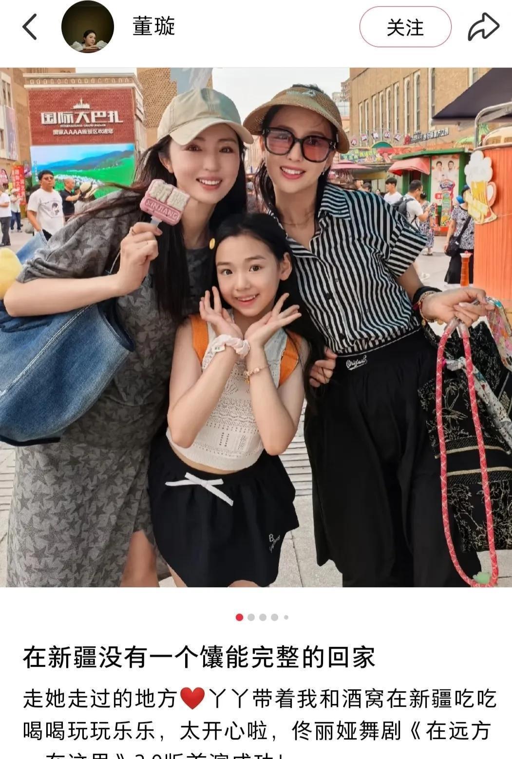 “丫丫带着我和酒窝在新疆吃吃喝喝玩玩乐乐,太怡悦啦!”董璇在搪塞平台上这样写谈,配图是三东谈主分享新疆好意思食的温馨画面。