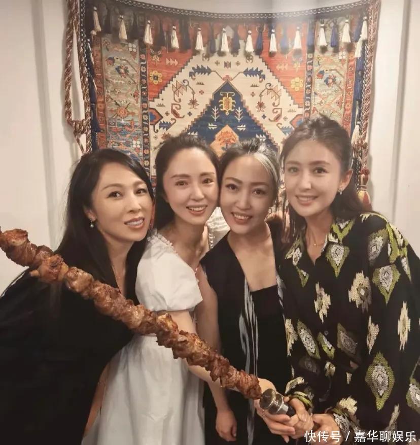 从相片上看跟她们扫数的还有其他两位一又友,看起来联系可以,要不董璇也不会在应付平台晒出来。